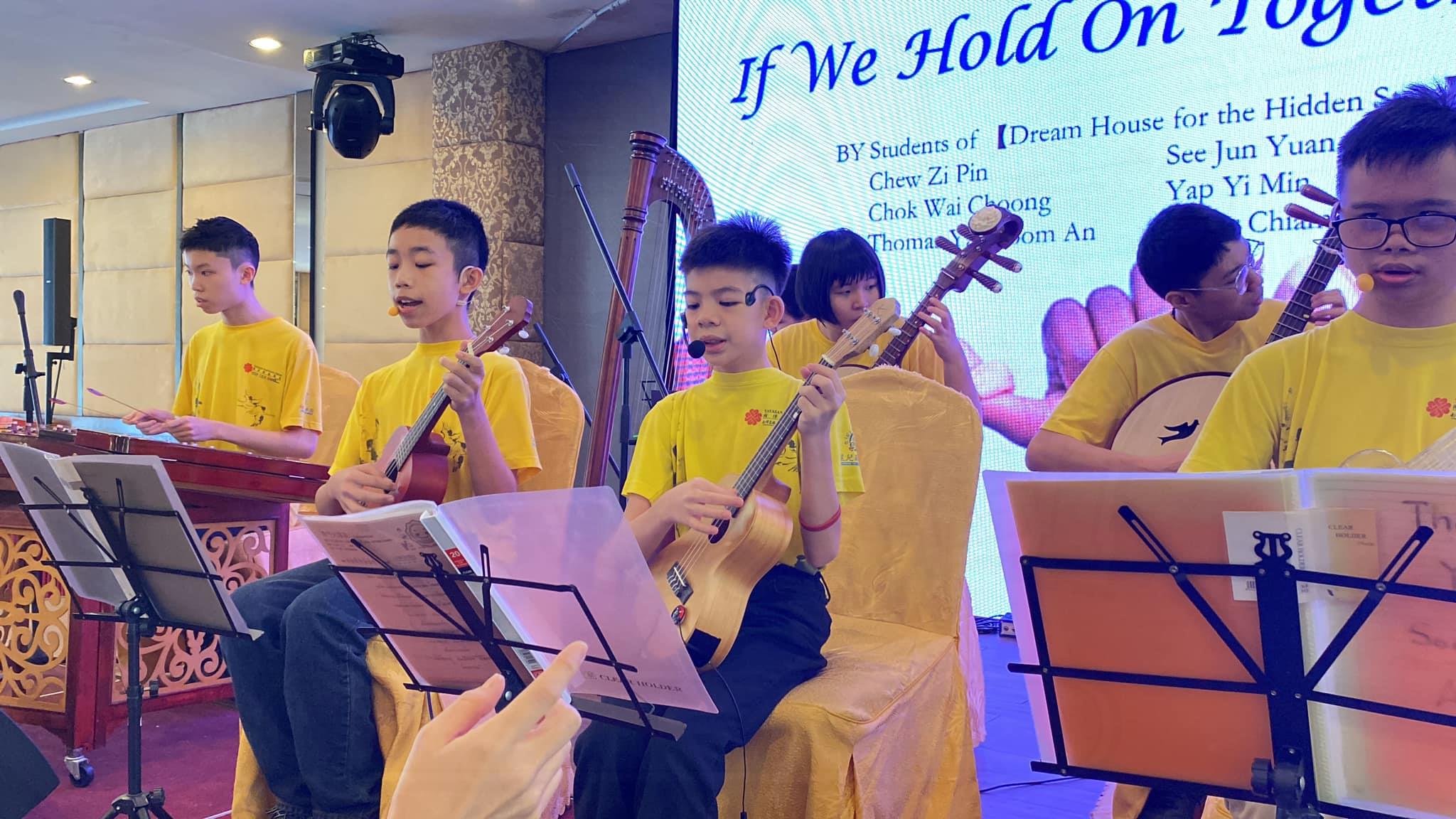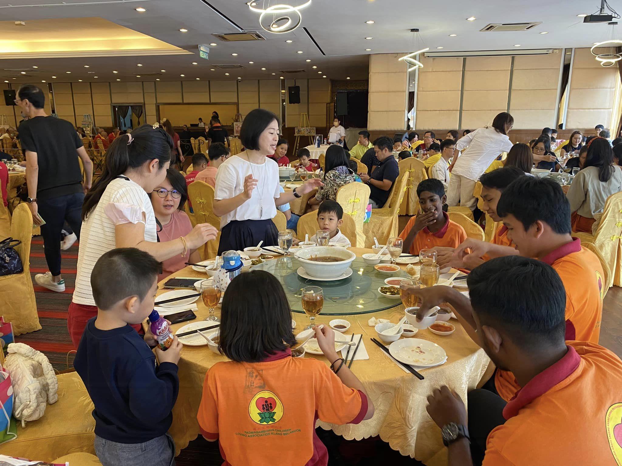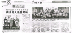| The 6th "Gratitude Luncheon with Orphans and the Elderly" co-organized by Yayasan Nanyang Press and Bao Bei Reading Wonderland was enthusiastically sponsored by 92 kind-hearted public, gathering 91 orphans and 36 elderly people to feel the warmth of the world. On last Sunday, a 30 tables luncheon was held at the Golden Dragonboat Restaurant. A total of 27 students performed at the luncheon. Among them, 21 students from the "Dream House for the Hidden Stars" used musical instruments such as piano, ukulele, zhongruan, guzheng, yangqin and harp to perform and sing. In addition, 6 students from the Bao Bei Reading Wonderland also performed solo singing, duet, crosstalk and diabolo performances.